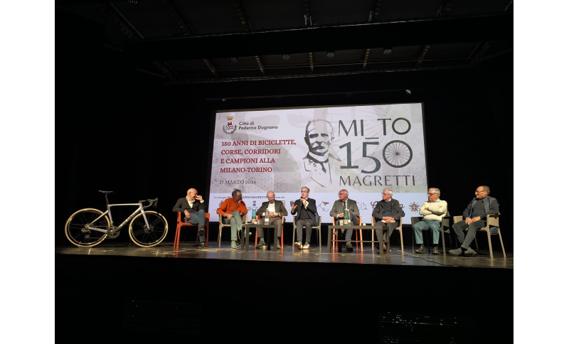 Centocinquant'anni di storia del ciclismo sublimati in un'ora di aneddoti e considerazioni attorno alla Milano-Torino, nella confortevole sala della Cineteca Metropolis di Paderno Dugnano. Con la conduzione del nostro direttore Pier Augusto Stagi, su organizzazione della nostra storica firma (e storica memoria) Giuseppe Figini, ben supportato dall'amministrazione comunale rappresentata dalla sindaca Anna Varisco e dall'assessora allo sport Paola Perrino, è andato in scena ieri sera Mi-To 150 anni Magretti: consesso di decani del giornalismo e del ciclismo pedalato, che hanno preso per mano i presenti a colpi di microfono e competenza ciclonarrativa.