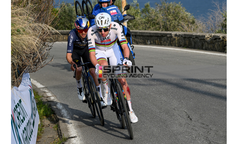 Sulla Cipressa gli hanno resistito solo un brillantissimo Tom Pidcock e il campione uscente Mathieu van der Poel, anche lui precedentemente finito a terra, che ha dovuto cedere sul Poggio. Il britannico bicampione olimpico della mtb non è riuscito a metterlo in crisi in discesa e, alla fine, ha dovuto arrendersi di mezza ruota nello sprint che ha premiato l'iridato.