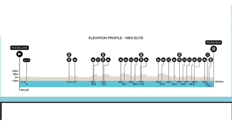 Nei primi settanta chilometri probabilmente non vedremo accadere molto, considerando che le strade sono tendenzialmente pianeggianti, ma quando il gruppo attraverserà per la prima volta la città di Waregem e successivamente raggiungerà Oudenaarde ci sarà da divertirsi tra salite e pavé. La prima salita che i corridori dovranno affrontare è una delle novità di questa edizione, si tratta della Hellestraat e a 77 chilometri dal traguardo li attende anche la Onderbossenaarstraat, un versante del Taaienberg.