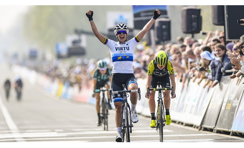 Marta s’impose nel Fiandre battendo in volata le compagne di fuga Annemiek Van Vleuten (Olanda) e Cecilie Uttrup Ludwig (Danimarca). Marta allora gareggiava per il Team Virtu e in quel Fiandre sfoggiava la maglia da Campionessa d’Europa vinta l’estate prima a Glasgow. Il 4° posto al Fiandre 2019 lo conquistò Sofia Bertizzolo, pure lei della Virtu, battendo allo sprint le migliori inseguitrici. Nella stagione 2019 Bastianelli ottenne 10 vittorie di grande spessore.