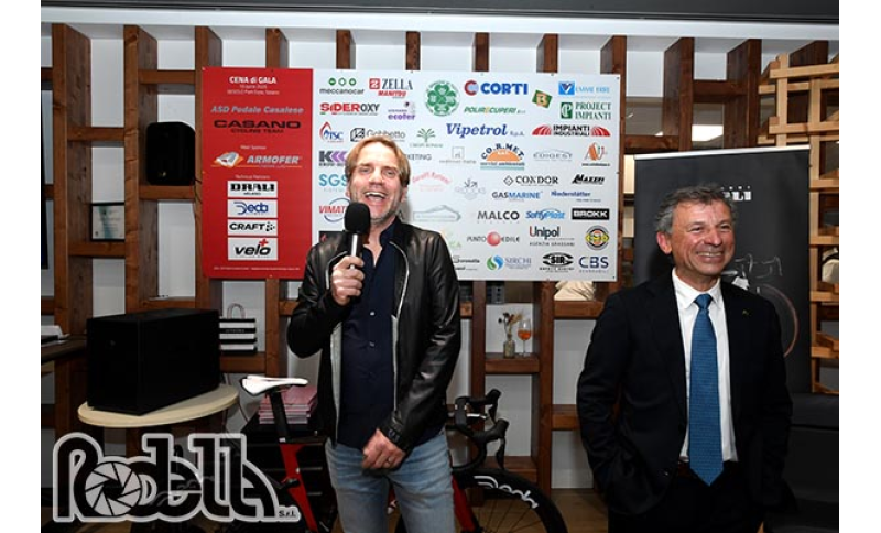 Che Winston Churchil usasse questa tecnica (tra le altre) per superare le sue paure di parlare in pubblico (a quanto pare raccomandava anche alle persone di esercitare i loro discorsi davanti a uno specchio) non è certo, sicuro che ieri sera Stefano Cinerari ha fatto la sua bellissima figura, parlando davanti ad una platea di oltre 130 persone, tra le quali spiccavano il decano dei team Manager, Bruno Reverberi, accompagnato dal nipote Gabriele. E poi una serie di ex corridori come Davide Bramati, Mario Scirea e il già citato Nicola Miceli accompagnato da Ambrogio Romanò, il signor System Cars. E poi Emanuele Bombini, Omar Piscina, Eugenio Berzin in forma come da anni non lo vedevamo e, con lui Gibo Simoni, Danilo Gioia, Dario Cataldo, Giacomo Nizzolo e Maurizio Spreafico, il signor Velo+. Presente il presidente regionale Stefano Pedrinazzi e poi una nutrita delegazione del Casano, ad incominciare dal direttore generale Lucio Petacchi e dall’amministratore delegato Michele Ricci. Così come preziosa è la presenza di Gian Luca Pozzi, amministratore delegato della Cicli Drali, che da due anni è partner della Armofer. Applauditissimo il professor Mario Sturla, il primo medico inserito nella Hall of Fame del pugilato italiano e un ospite d’eccezione, Carlo Genta, voce sportiva di Radio 24, che dopo anni è tornato a respirare aria di ciclismo grazie a Stefano Cinerari che l’ha “convocato” per l’occasione.