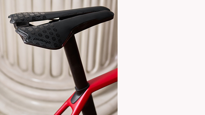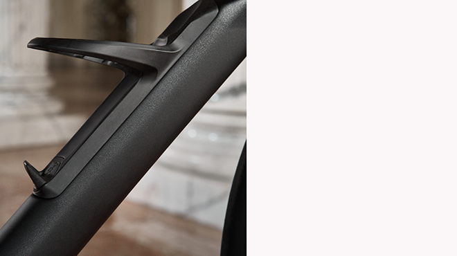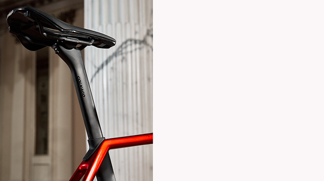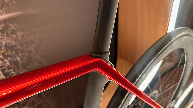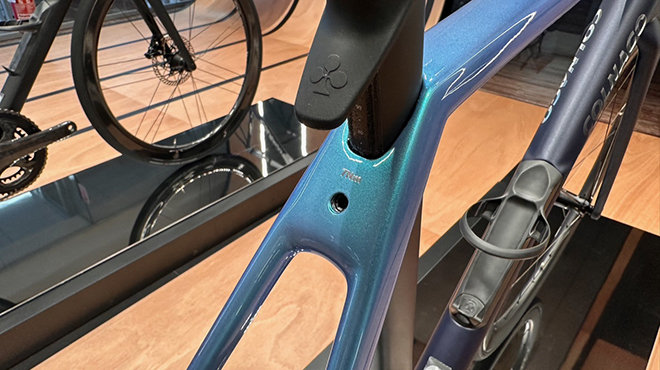 Ovviamente tutto avviene senza compromettere la rigidità o le prestazioni delle parti, ma a beneficiarne è anche la pulizia d’insieme e l’aerodinamicità di questa parte di tubo obliquo. La clearance sale e arriva a consentire l’utilizzo di pneumatici fino a 35mm, altro dettaglio che attirerà ancora più utilizzatori. Il bellissimo reggisela è quello che ti aspetti, sottile, elegante e flessibile, ma anche perfettamente integrato nel design del telaio. La sua chiusura è celata e ben armonizzata da una cover in gomma che rende questa parte ancora più filante.