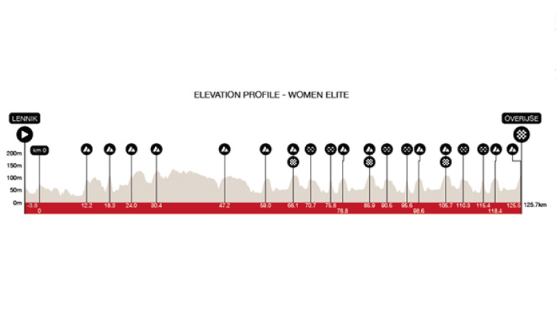 La prova maschile, sostanzialmente invariata rispetto alla scorsa edizione, presenta 21 salitelle, mentre quella femminile ne conta 19 su 126 chilometri. Nella prima parte i corridori affrontano già sette salitelle, utili a mettere fatica nelle gambe, ma è nel circuito finale che la corsa entra davvero nel vivo. A Overijse iniziano tre giri di circa 20 chilometri ciascuno, caratterizzati da quattro salite: nell’ordine, Hertstraat, Moskesstraat, Holstheide e l’arrivo a S-Bocht Overijse. È il cuore della corsa: la ripetizione degli sforzi, unita alla difficoltà di recupero, favorisce attacchi progressivi e azioni da lontano. Il percorso maschile include dieci salite differenti, da affrontare più volte per un totale di 21 volte. Le più significative: Alsemberg (1500 m al 3,9%); Bruinepot (1200 m al 5,7%); Beerselberg (500 m al 7,9%); Braine-l’Alleud (900 m al 4,9%); Chemin dit le Bois (1400 m al 3,6%); Rue François Dubois (900 m al 4,1%); Hertstraat (700 m al 4,7%); Moskesstraat (500 m al 9,2%); Holstheide (1000 m al 5,3%); S-Bocht Overijse (1300 m al 4,2%), dove c’è l’arrivo.