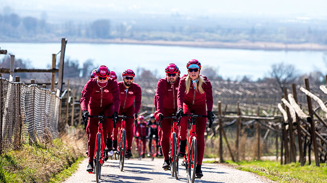 Lo scopo è quello di dare un’opportunità per un anno, soltanto uno e ogni anno si ricomincia con una nuova selezione, ad un gruppo internazionale di appassionati che saranno completamente equipaggiati con gli stessi materiali (bici, abbigliamento e accessori) del team PRO, ma soprattutto con una consulenza personalizzata su allenamenti, alimentazione e monitoraggi con quotidiane condivisioni on line con un team professionale di specialisti. Verranno anche offerte le partecipazioni agli allenamenti comuni durante alcuni week end lunghi, uno dei quali è tradizionalmente programmato sulle belle strade collinari di Caldaro (BZ) alla fine del mese di marzo.