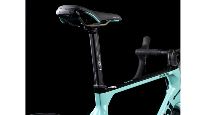 La pulizia delle linee è esaltata dal passaggio interno dei cavi idraulici, mentre il reggisella custom in lega è stato sviluppato proprio per regalare ad Infinito XE un look integrato e filante. L’attacco in lega ed i distanziali sono stati creati da Bianchi per assicurare una migliore integrazione con il tubo sterzo conico (1 1/8”-1.5”), che migliora la stabilità alle alte velocità e durante l’azione frenante.