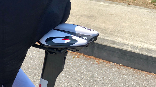 Prima di tutto viene il comfort, visto che le prove a cronometro e quelle di triathlon vengono corse al massimo delle proprie forze, quindi è essenziale mettere l’atleta nella migliore posizione per esprimersi a dovere. Tra scafo e imbottitura viene posizionato un elastomero con il preciso ruolo di filtrare le vibrazioni e attutire gli shock, ma quello che appare evidente è il muso corto della TGale, un naso corto e largo che offre appoggio in ogni circostanza. La seduta è caratterizzata inoltre dal lungo canale tipico del sistema PAS, un dettaglio che ho apprezzato a tutto tondo nelle varie selle Prologo provate fino ad oggi.