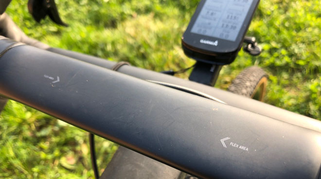 Parlavamo giusto di comfort, ebbene sì, la maggior parte della comodità di Grail deriva dalla natura del suo manubrio, un prodotto magistrale che flette nella sua parte alta assicurando a spalle, braccia e mani un trattamento soft. I due piani che vedete chiaramente in foto sono stati studiati per mettervi nella miglior posizione possibile nelle varie prese del manubrio, così la presa bassa è leggermente rialzata rispetto a quella offerta da un classico manubrio, mentre quella sulla parte alta delle leve assicura una posizione ideale nel fuoristrada.