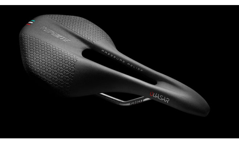 Quasar viene realizzata con l’elevata qualità delle lavorazioni che contraddistinguono Repente, quindi, largo uso di materiali e tecnologie all’avanguardia per produrre una sella che raggiunge appena i 170 grammi. La seduta « flat » da 142X260mm si caratterizza con una ampio canale centrale, mentre la superficie d’appoggio posteriore viene ben definito dall’effetto « close fit » con cui Repente assicura ad ogni ciclista la corretta posizione in sella.