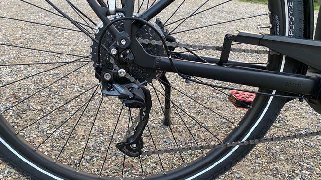 Il montaggio poi si affida a Shimano con deragliatore posteriore Altus M2010 a 9 velocità, cassetta Shimano 11-36, guarnitura Prowheel in lega da 38T, pneumatici Bontrager E6 Hard-Case Lite e cerchi Alex DP23 in lega. La sella è una comodissima Selle Royal Nuvola mentre le manopole Bontrager Satellite Plus Ergonomic, il portapacchi in lega, le luci integrate e i parafanghi MIK vanno a perfezionare un allestimento ben bilanciato per l’utilizzo cittadino.