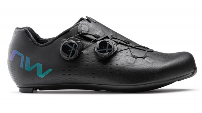 La scarpa per chi è alla continua ricerca di prestazioni. Ottimo il rapporto qualità prezzo. Le scarpe da bici Revolution 3 sono comode, traspiranti e scaricano la potenza ottimamente sui pedali. Il doppio rotore SLW3 tiene il piede ben saldo ottimizzando il fit, per assicurare la spinta sui pedali. La Suola Morph Carbon 12 AAS con inserto 100% in carbonio nella zona del pedale ha indice di rigidità 12.0., mentre l’esclusivo Anatomical Arch Support®, in TPU permette alla scarpa di modellarsi perfettamente sull'arco plantare, rendendo la suola ideale per ogni tipo di piede . La scarpa è compatibile con adattatore NW Speedplay per la minore distanza piede-pedale. La tomaia con costruzione Biomap unibody, più anatomica e fasciante, minimizza la dispersione di energia ai pedali e con il doppio rotore SLW3, l'unico con rilascio step-by-step e completo in un solo pulsante, permette una distribuzione ottimale della pressione