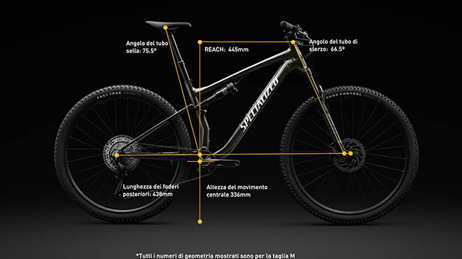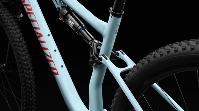 Il carro posteriore sfrutta foderi flessibili per ottenere prestazioni elevate con la sospensione, prestazioni migliori anche a livello di manutenzione dei perni. Specialized opta per un mono con 110mm di travel e forcella da 120mm con uno schema che garantisce un equilibrio dinamico invidiabile. Il rapporto di leve e l’anti-affondo sono stati equilibrati e portati avanti insieme nel progetto per offrire esattamente questo, ovvero il bilanciamento perfetto tra comportamento delle sospensioni e l’efficienza della pedalata. In questo discorso fa molto il tubo sella ripido anche se è tutta la posizione che atleta trova in sella ad essere quella giusta. Questa combinazione posiziona la Chisel idealmente tra la nuova Epic 8 e la precedente Epic EVO, offrendo un profilo cinematico versatile che si adatta a diverse condizioni di guida e trova il suo terreno nel XC moderno e nel Downcountry. Perfetta nella fase di pedalata, fluida e intuitiva, diventa veloce e precisa nel downcountry.
