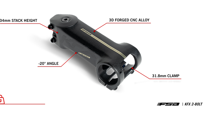 Il nuovo attacco manubrio KFX 2-Bolt prodotto da FSA nasce per offrire le massime performance nel XC, specialità in cui precisione, controllo, leggerezza e affidabilità sono elementi imprescindibili per puntare al successo. Sviluppato insieme a squadre poi calibro mondiale come il Cannondale Factory Racing Team, il KFX 2-BOLT incarna il concetto di "controllo totale” necessario per primeggiare nelle condizioni di gara più intense.