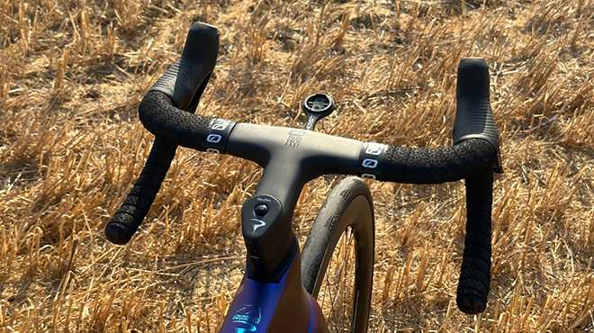 Sul lato destro la forcella non presenta il classico foro da cui è possibile vedere il perno passante, perno che ora è più rigido e corto visto che la sua battuta viene annegata direttamente nella struttura del fodero. Il tubo sella resta sottilissimo, mentre nuovo è il morsetto sella, dotato anche di un meccanismo ottimizzato nelle sue dimensioni e nel suo funzionamento. Il nuovo manubrio integrato Talon Fast in carbonio monoscocca è leggerissimo e davvero molto ergonomica. La piega compact ha un flare di 7°, l’ideale per godere di una manovrabilità eccellente anche in presa bassa.