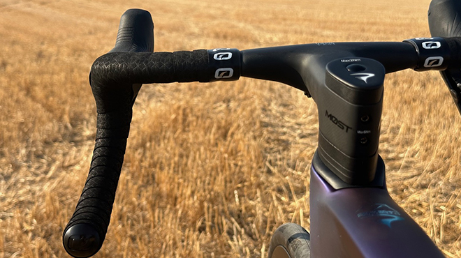 La configurazione di questa Dogma F brilla per leggerezza e con la rapportatura ideata da SRAM vi sembrerà di essere velocissimi anche in salita. Il gruppo Red è eccellente, sia per l’ergonomia delle nuove leve, che per la cambiata, inoltre, garantisce una frenata davvero potente e modulabile. Nei miei segmenti ho raccolto record su record, soprattutto nei tratti guidati in discesa, un aspetto che mi ha stupito poiché non mi è mai sembrato di aver calcato la mano. Il triangolo posteriore è molto consistente ma quello che per me ha fatto la differenza è stato tutto l’avantreno, a partire dal nuovo manubrio fino alla forcella Onda. Tutta la zona dello sterzo ha una marcia in più, merito di come il tubo orizzontale e il tubo obliquo vengono raccordati, pura poesia. Il nuovo cockpit Talon Fast integrato è un vero lusso, perfetto per il modo in cui fa sentire la strada e comodo in ogni frangente.