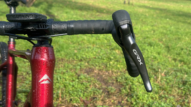 Per il montaggio Merida va sul sicuro con elementi rodati e di ottima qualità. Prima di tutto arriva la trasmissione Shimano GRX 12 velocità in configurazione monocorona. Infine, le ruote Easton EA70 AX vengono montate con gli ottimi copertoni MAXXIS Rambler da 45. A contenere i prezzi ci pensano il reggisella, il manubrio, l’attacco e la sella prodotti da Merida, elementi su cui si può fare ampio affidamento. Come vuole la prassi la trasmissione Shimano GRX a 12 offre una cambiata precisa e morbida, anche sotto pressione, mentre la frenata affidata a rotori da 180 è particolarmente pronta e potente.