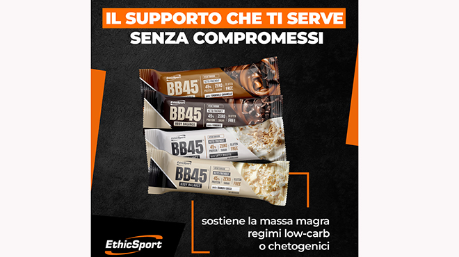 Oggigiorno viene posta sempre più attenzione al ruolo delle proteine e anche alla loro qualità, soprattutto per quello che riguarda la performance sportiva e in tutte querelle situazioni in cui è necessario porre attenzione al controllo del peso. Che si tratti di diete low-carb o chetogeniche, la nuova barretta BB45-Body Balance di EthicSport è la soluzione adatta per chi non desidera rinunciare alla qualità delle materie prime, al gusto e alla funzionalità.