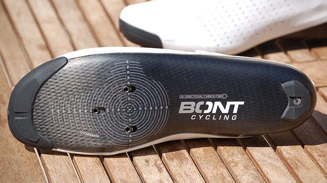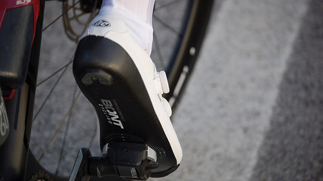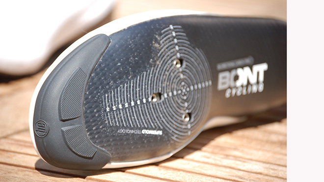 Sia chiaro, il sodalizio che si genera è molto comodo e la pedalata sia in termini di spinta sui pedali che di sollevamento ne beneficia con il risultato che sembra più facile generare una pedalata piena e rotonda. La suola è pazzesca ed è davvero impeccabile per forma e rigidità. La sua costruzione si basa su processi di cui Bont è proprietaria ed il risultato, oltre che perfetto in termini di pura estetica, è ampiamente soddisfacente a livello di prestazioni. La filosofia presentata da Bont anni fa resta la stessa, quindi domina l’ampio spazio in punta per consentire al piede e alle dita di trovare millimetri importanti durante la fase di spinta sul pedale. Tutto questo, oltre a dare importanti benefici immediati, favorisce una normale circolazione nell’arto, un fattore che evita l’insorgenza di dolori e formicolii anche dopo ore di pedalata.