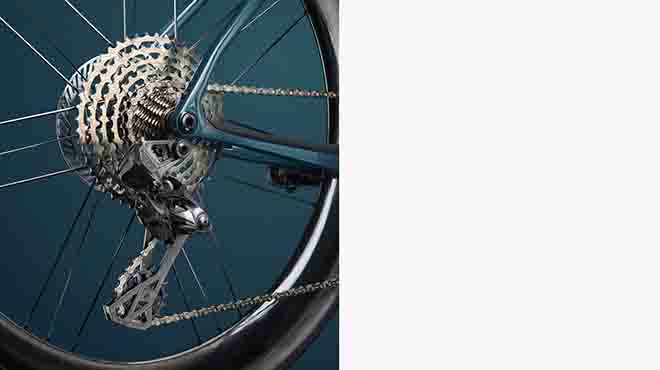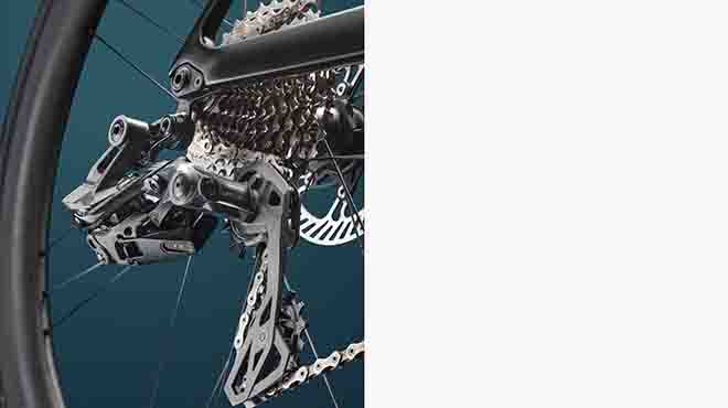 Il nuovo deragliatore presenta soluzioni tecniche specifiche per il mondo gravel, a partire dal nuovo Nano Clutch, la frizione studiata per mantenere il tiro corretto della catena anche nei più difficili sobbalzi. In definitiva è l’intero componente ad essere stato ricalibrato per l’utilizzo off road, quindi troviamo una struttura rinforzata e una gabbia con bilanciere in carbonio e allungato a 92,5mm, la dimensione giusta per cambiate precise e affidabili con cassette posteriori fino a 48T.