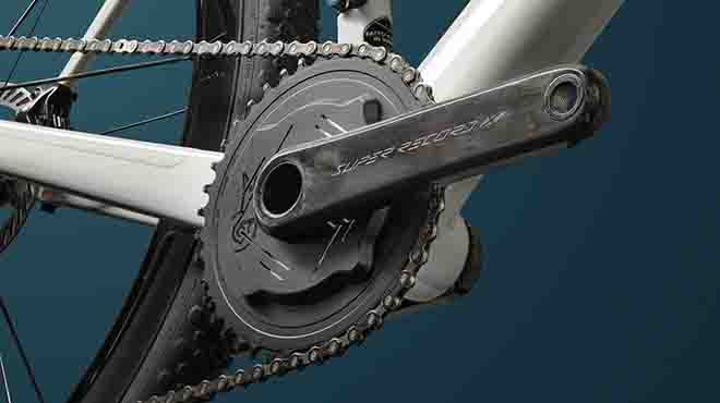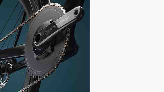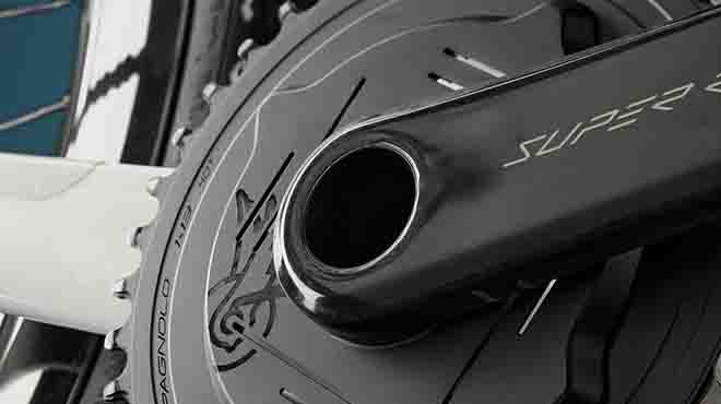 In un gravel che corre spedito verso prestazioni sempre più elevate non può mancare una guarnitura con misuratore di potenza integrato, qui interamente ripensato per l’utilizzo con monocorona. Il nuovo Super Record X PowerMeter adotta sistema HPPM (High Precision Power Measurement) e lavora mediante sedici sensori per incrociare in tempo reale la potenza in N/m con la velocità angolare del giroscopio integrato. I dati, sempre disponibili in tempo reale, sono affidabili e precisi. Campagnolo colloca il dispositivo direttamente sul perno per favorire una misurazione pura della coppia torcente.