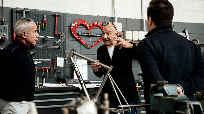 Per vivere la De Rosa di tutti i giorni, con i nostri meccanici al lavoro, il telaista nel titanium loft e curiosare dove nascono le bici che fanno battere il cuore ai ciclisti di tutto il mondo. Niente palco, niente filtri, nessuna scaletta. Solo la vita di tutti i giorni, autentica in De Rosa. La tranquillità di un giorno nel quale scoprire davvero com’è fatta una De Rosa da vicino, chiacchierare con il team e fare tutte quelle domande che il sabato, tra un workshop e un bistrot affollato, sarebbe difficile fare.
