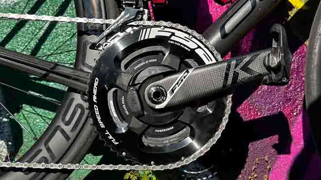 Non facciamone un mistero, la guarnitura Powerbox K-Force Team Edition di FSA è un vero gioiello in cui la leggerezza del carbonio incontra le rilevazioni precise offerte da uno spider Power2Max, il tutto incorniciato da corone in lega lavorate al CNC. Grande qualità e leggerezza caratterizzano questa guarnitura, una delle più sfruttata da diversi team del WorldTour.