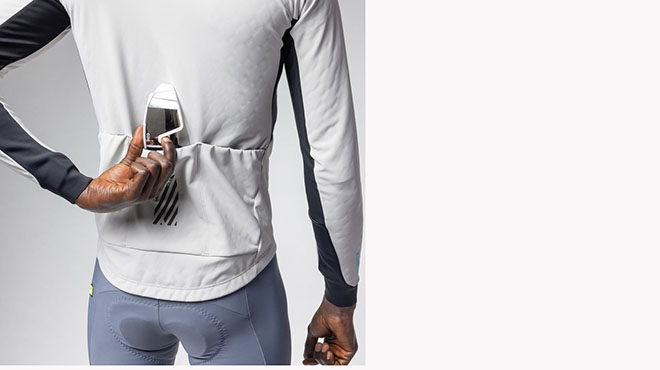 Il tessuto accoppiato grazie alla membrana climatica mira a mantenere il corpo caldo e asciutto evitando spifferi e ottimizzando la gestione dell’umidità corporea. All’interno della giacca viene ricavato una sorta di gilet che diventa il vostro asso nella manica nelle salite in cui fa comodissimo disperdere più umidità e calore corporeo. Le maniche terminano con polsini a taglio vivo, la soluzione ideale per fare in modo che questa parte della giacca si integri nei guanti. Il trattamento DWR superficiale dona al capo una leggera impermeabilità, abbastanza per far scivolare via acqua e sporco se la usate nel gravel. Non mancano infine elementi riflettenti, tre comode tasche ed un colletto molto protettivo.