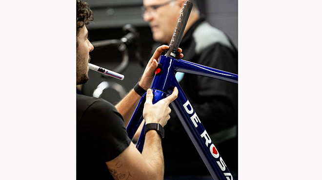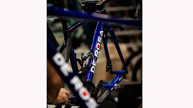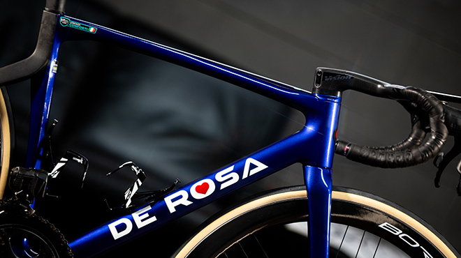 De Rosa presenta la nuova 70 che accompagnerà il team VF Group-Bardiani CSF-Faizanè nel 2026. «La scorsa settimana mi ha chiamato un giornalista, stava facendo il giro dei brand per sapere delle bici dei team e mi ha chiesto il colore della nostra. Gli ho detto che non lo avrei svelato prima del lancio ma che sarebbe stato un omaggio ad Ugo. Mi ha risposto: “Allora sarà di un bellissimo ed elegantissimo blu”. Conosceva mio papà» racconta Cristiano De Rosa.