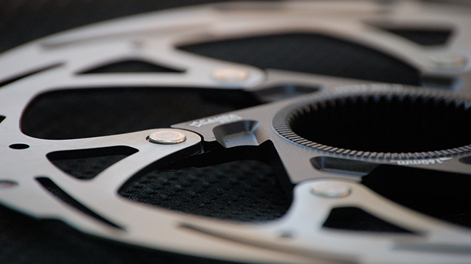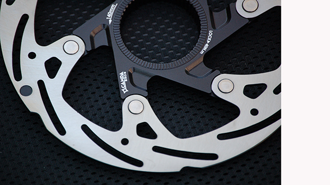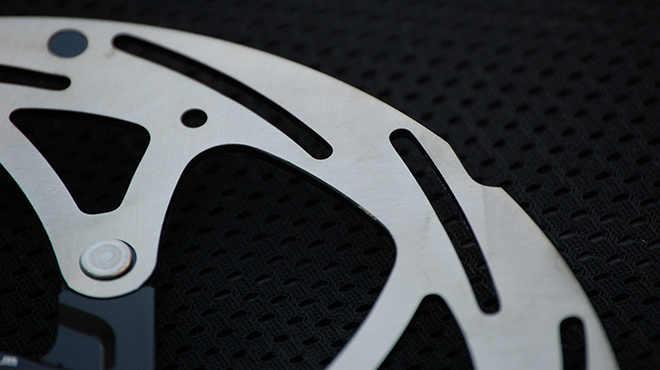 I due rotori hanno rispettivamente un peso di 140 e 160 grammi per le misure 140 e 160mm e spiccano per una robusta pista frenante realizzata in acciaio inox SUS-410. Questo materiale è quello giusto per sopportare pesanti carichi e dimostra nel tempo una buona resistenza alla corrosione. I profili esterni vengono arrotondati all’ultimo mentre le varie lavorazioni servono per contenere il peso e fornire un ottima dispersione del calore e garantire una robusta presa sulle pastiglie. Lungo la pista sono inseriti importanti indicatori di usura, anche perché occorre ricordare che i dischi delle biciclette non sono eterni. Detto questo, passi la misurazione con un calibro che deve essere fatta ad ogni sostituzione delle pastiglie, ma vedere ad occhio nudo un eventuale segnale di usura si rivela decisamente comodo.