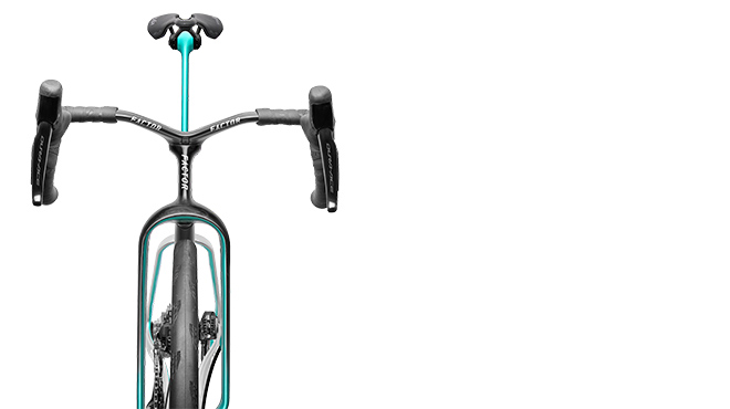 La ONE introduce un sistema frontale originale in ogni sua parte, un frontale rivoluzionario composto dalla forcella bayonet e da un manubrio decisamente innovativo, due particolari strutturali che cambiano il volto di questo prodotto e sono stati sviluppati tramite centinaia di iterazioni CFD. Ovviamente sono stati anche i recenti aggiornamenti regolamentari UCI a rendere tutto questo possibile.