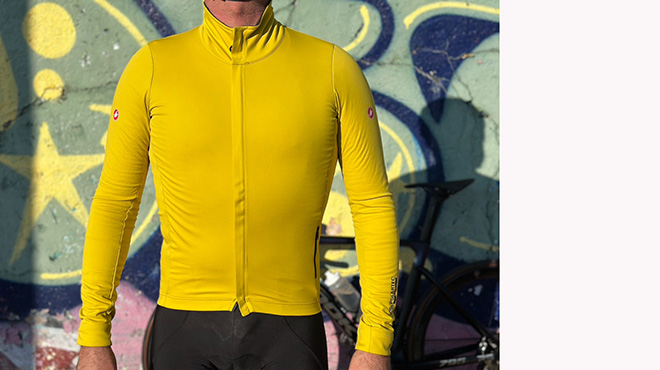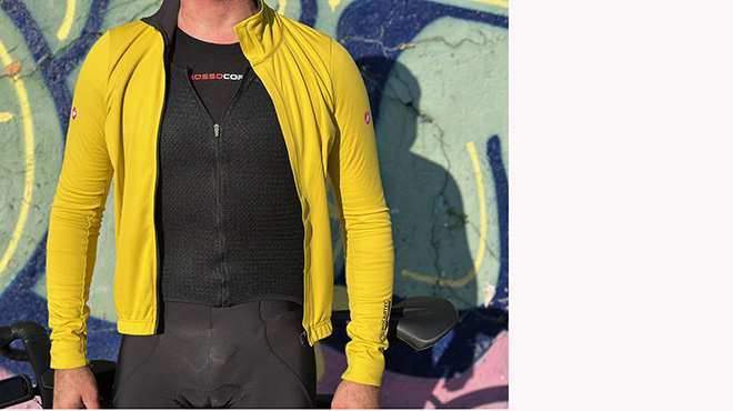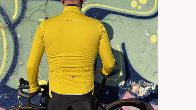 La giacca Alpha 150 è per me oggi la giacca invernale definitiva, un capo certamente costoso ( ora è possibile trovarla in saldo ), ma davvero potente nel suo utilizzo. La ho infinitamente sfruttata nelle uscite serali, quelle in gravel in cui il freddo, la nebbia o la pioggia leggera farebbe passare la voglia a chiunque. È proprio in queste condizioni che mi ha stregato. In base alle temperature esterne ho alternato maglie intime più o meno pesanti con ottimi risultati. Per dirvi quanto l’Alpha™ sia incredibile vi ricordo che potreste indossare la giacca a pelle senza mai avere problemi con la sudorazione. La membrana esterna è quella che fa la regia e regola l’ingresso dell’aria, ma fatto questo, dona l’impermeabilità necessaria per affrontare anche le situazioni più umide e bagnate. La qualità dei materiali unitamente a quella delle lavorazioni messe a punto da Castelli porta il livello davvero molto in alto. Il colletto è una grande barriera per l’aria fredda, mentre l’Alpha™ posto all’interno vi offre la sensazione che ogni cosa sia possibile. Sulla pelle resta una sensazione di calore piacevole ( mai eccessiva ) e sarà davvero difficile sentire il freddo tipico di quei momenti in cui il sudore si raffredda. Se nelle salite il ritmo sale e avvertite troppo caldo vi basterà abbassare la zip dall’alto o alzarla dal basso per gestire meglio il calore. L’Alpha™ sulla parte frontale ( sembra un gilet ), sul retro e lungo le maniche è una struttura flottante posta tra voi e la membrana esterna ed è lui con la sua leggerezza e permettere al calore di rimanervi addosso.