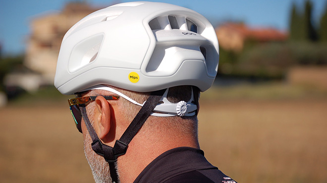 Con circa 270 grammi di peso nella taglia M il Cytal rientra a pieno merito nella categoria dei caschi leggeri ( parte alta della classifica ) e mostra doti fuori dal comune in termini di ventilazione. L’aria che scorre nei canali è tanta e trova facilmente via di fuga nelle prese d’aria posteriori, inoltre, l’Integrated Wing protegge molto bene dal sole limitando di molto la temperatura della testa durante i mesi più caldi. Nel dettaglio, ricordo che anche il colore bianco fa la sua parte e le lunghe giornate al sole estivo diventano così meno bollenti. La protezione sulla fronte e a livello delle tempie è tanta, mentre l’integrazione con gli occhiali da sole è sempre adeguata. Dal punto di vista estetico può piacere o non piacere, ma Cytal è e resta uno dei migliori prodotti per la storia del design in casa POC. La calzata è precisa, come ottimo è tutto il comparto che vi permette di adeguare il casco alle vostre esigenze, dai cinturini fino al dispositivo di regolazione posteriore. MIPS® Air Node è leggero e ben integrato nella calotta, mentre le uniche imbottiture sostituibili sono quelle anteriori, morbide e di buona fattura. Ci sono parecchi trucchetti per utilizzarlo bene anche eni giorni più freddi e per farlo potrete usare pellicola trasparente per proteggere le prese d’aria anteriori o indossare una semplice cuffia termica. Cytal è un ottimo casco da strada ma anche un ottimo casco per il gravel, soprattutto per la prossima estate.
