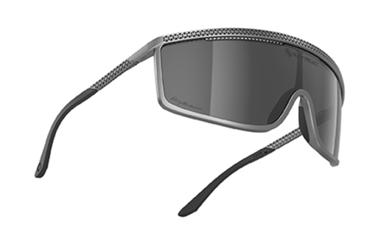 Il logo Rudy Project, la firma di Rudy Barbazza e la numerazione degli occhiali da 1 a 100, stampati con tecnologia laser direttamente sulla lente, completano la finitura.