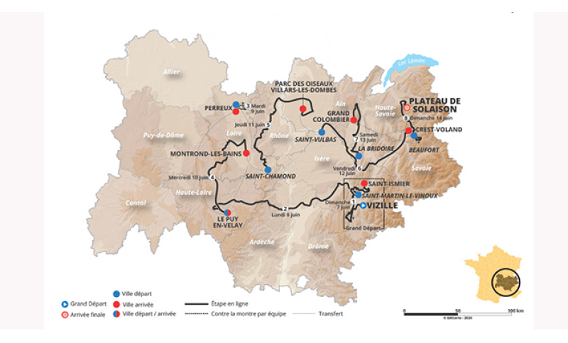L'edizione 2026 scatterà da Vizille domenica 7 giugno per concluderso una settimana più tardi al Plateau de Solaison. La varietà di terreni e profili promette una corsa emozionante nelle otto tappe, con una partenza grintosa dall'Isère e un finale in grande stile sulle cime dell'Ain e della Savoia.