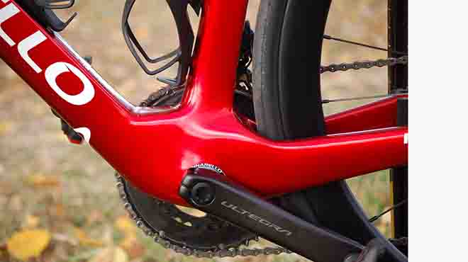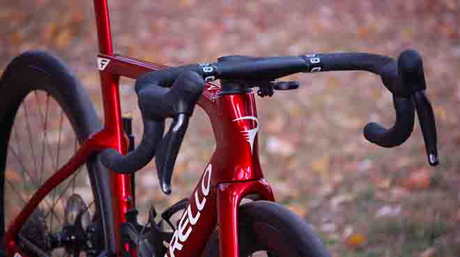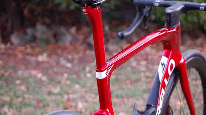 Colorazioni, verniciatura e montaggio sono un plus di casa Pinarello, direi che tutto merita un 10 e lode. La zona del movimento centrale è un elemento su cui ci si sofferma volentieri, bella da un punto di vista estetico e funzionale per tutto quello che perfeziona la rigidità del triangolo anteriore. Insomma, la F è gustosa nella guida, precisa e completa, sia nelle lunghe giornate in sella che negli allenamenti di poche ore. Va benissimo in gara, ma conquista con una dose maggiore di comfort che la Dogma F per ovvie ragioni non vuol donare. Il manubrio Talon Most Ultra Fast si conferma un vero spettacolo e con la sua leggera apertura sulla parte bassa vi permette di pedalare benissimo in posizione aero godendo di un’ottima guidabilità.