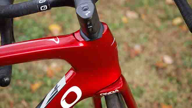 F7, offre l'equilibrio ideale tra reattività, peso e assorbimento delle vibrazioni ma riesce ad essere sul pezzo anche quando i ritmi salgono. L’allestimento in questo caso prevede oltre al gruppo Shimano Ultegra Di2 ruote Most Ultrafast 45 DB con mozzi Vision, coperture Most Competition 30mm prodotte in collaborazione con Vittoria e la sella Most. Nel complesso si lima molto il prezzo con questo allestimento, ma la qualità c’è e non si rinuncia a nulla. Il peso è di 7,8kg esclusi i pedali, un buon risultato per una bici così performante, versatile e sportiva che costa 7.900€. A catturare l’occhio sono le soluzioni di classe a cui Pinarello non rinuncia, come la sontuosa verniciatura, la scritta Onda sulla forcella o la placca a protezione del telaio posta all’interno del carro posteriore.
