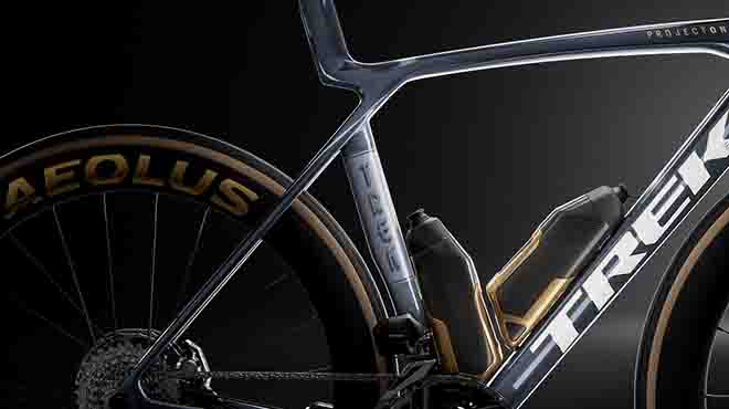 La No. 76 è invece una Project One ICON che rende omaggio al luogo in cui tutto ebbe inizio, una colorazione disponibile esclusivamente su Madone SLR 9 AXS. Troviamo qui gli spunti tipici dei primi telai Trek ma anche elementi che rappresentano il futuro. La nuova grafica presenta il logo originale del 1976 e vari elementi storici del marchio. Ritroviamo il blu heritage del marchio, un colore ispirato alle prime bici da turismo realizzate a mano da Trek. La No. 76 ICON viene fornita con ruote Aeolus RSL con decal dorate.