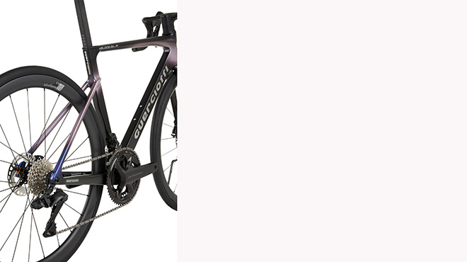 Il passaggio cavi completamente interno contribuisce a rendere le linee ancora più pulite e raffinate, migliorando allo stesso tempo l’efficienza aerodinamica. Il risultato è una bicicletta dall’estetica essenziale e contemporanea, capace di distinguersi non solo per le prestazioni ma anche per la cura dei dettagli.