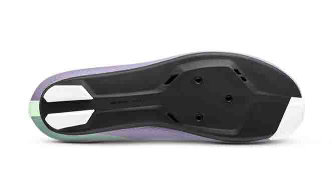 A questo proposito troviamo su Lyra una punta più larga e accogliente ( Natural Shape ), con una suola che offre una sensazione più naturale nelle fasi di massimo sforzo. La nuova ergonomia offre ancora più spazio di manovra a tutti quei ciclisti che preferiscono una posizione delle tacchette leggermente arretrata, un setup sempre più preferito per migliorare la stabilità della pedalata e l'efficienza negli sforzi prolungati. La suola R4 in composito dona equilibrio e tanta stabilità, ma anche una elevata rigidità. La sua forma promuove come già sottolineato una posizione più naturale del piede sul pedale con un tallone che resta leggermente più basso rispetto la parte anteriore. Non mancano le prese d’aria, perfette come sempre nel permettere all’aria di rinfrescare la parte palmare del piede.