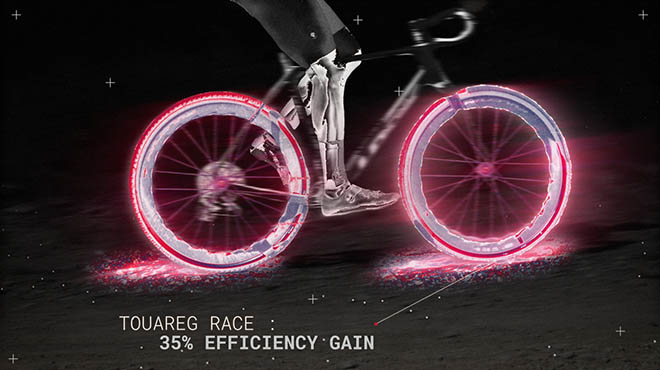 Il nuovo Touareg Race è stato progettato per soddisfare le esigenze del gravel racing di alto livello e mette in mostra i muscoli per farsi largo. Innanzitutto troviamo in questo nuovo modello l'innovativa tecnologia che rende veloce il battistrada del Caracal Race, quello che Bicycle Rolling Resistance definisce lo pneumatico gravel più veloce al mondo. L’ultima mescola Mach Tread 3.0 di Hutchinson offre il 25% in più di ritorno elastico (rebound) e il 10% in più di resistenza agli strappi, riducendo al minimo la perdita di energia durante il rotolamento. La sua carcassa SwiftEasy riduce ora il peso e presenta una flessibilità ottimizzata che dona più velocità in ogni condizione. Infine, il nuovo Touareg Race, realizzato a mano in Francia, sfoggia un peso di soli 480 grammi.