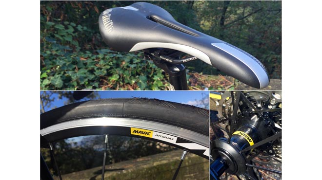 Il gruppo del modello in prova è un solido e rodatissimo Shimano Ultegra 6800 con guarnitura compatta 50-34 e cassetta posteriore 11-32, mentre per le ruote Look continua la solida collaborazione con Mavic montando le Aksium, prodotto un po’ pesante ma solido ed efficace. I copertoni sono dei Continental Ultrasport da 25mm scorrevoli e comodi su tutti i terreni.