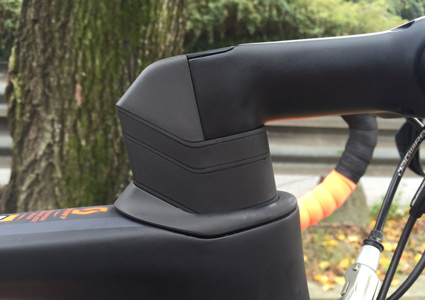 Il pacchetto di accessori scelti da Scott per la Foil 30 è ben bilanciato. Il gruppo Shimano 105 è rodatissimo e pur essendo lontano nei valori di listino da Ultegra e Dura Ace ne replica a meraviglia il funzionamento, senza mai dare segni di flessione. Manubrio e pipa sono targati Syncros (accessori creati da Scott) e realizzati in alluminio. Ricalcano grossomodo il taglio aero del modello integrato realizzato in carbonio per la Foil top di gamma. Il merito va sicuramente al disegno della pipa Syncros Integrated e agli spessori sagomati che donano una linea estremamente pulita. I freni Tektro svolgono egregiamente la loro azione, mentre il reggisella Syncros Foil aero Carbon, pur avendo un taglio aerodinamico, partecipa alla complessiva comodità offerta dal telaio. Il movimento centrale è di tipo Press Fit ed è contenuto in una zona robusta e filante in cui l’obliquo continua idealmente nei foderi bassi del carro posteriore. La guarnitura Shimano FC-RS500 è montata con corone 52-36 che accoppiate a cassetta da 11-28 offrono una rapportatura completa per togliervi d’impaccio in salita e farvi menare in pianura.