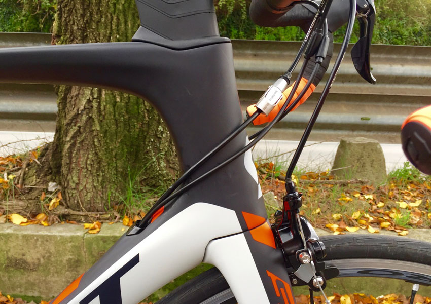 La scelta di questa di questo composito è dovuta al contenimento del costo ma anche alla volontà di donare al telaio più comodità senza tralasciare le doti di rigidità laterale che contraddistingue il progetto Foil. La forcella, anch'essa in carbonio HMF ha testa conica da 1 pollice e ¼ per 1½ ed ospita cuscinetti maggiorati per consentire una guida più precisa e reattiva. Molto curato risulta il passaggio dei cavi che è interno ed ha come accesso una piccola boccola sul tubo obliquo, posto sopra l’alloggiamento per la borraccia. La geometria è il frutto di un lavoro congiunto tra le squadre professionistiche e il team di ingegneri e permette un’impostazione aggressiva anche se la posizione in sella non è di quelle estremamente allungate, come forse accadeva con il primo modello. Quello che cambia principalmente con una simile configurazione è la maneggevolezza ed una governabilità del mezzo in tutti i contesti.