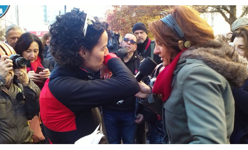 Freddo sole asfalto rotonde controviali piste furgonati autoarticolati tubi di scappamento. Chi pedala a ginocchia larghe chi a spalle strette chi con lo zaino chi con il passamontagna chi con il cestino della spesa. Sorrisi saluti auguri battute presentazioni selfie chiacchiere interviste confidenze dichiarazioni. Chi riconosce chi si ferma chi studia chi suona chi punta il dito medio (non esattamente un’indicazione stradale). Traffico semafori fotografie incitamenti proteste clacson. Chi dice ci vediamo a Oslo chi ci vediamo alla radio chi ci vediamo alla prossima.