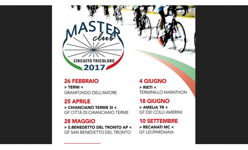 Manca meno di un mese alla chiusura degli abbonamenti del Master Club Circuito Tricolore. L'ultima data utile sarà il 26 febbraio, giorno della prova d'apertura a Terni, la Granfondo dell'Amore - Città di Terni. Fino a questo giorno sarà possibile abbonarsi con quota di 140 euro, che darà diritto a partecipare a sei bellissime manifestazioni.