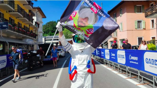 La palma del tifoso più originale (e più coraggioso, visto il casco e la divisa da astronauta che indossa) va al supporter di Marco Tizza che sventola una bandiera che recita "Marco Tizza, portaci sulla luna".