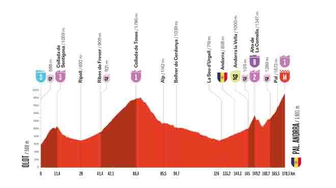 Si corre oggi la Olot - Pal Andorra di 170,3 km con 3.475 metri di dislivello. È la prima frazione di montagna della corsa.