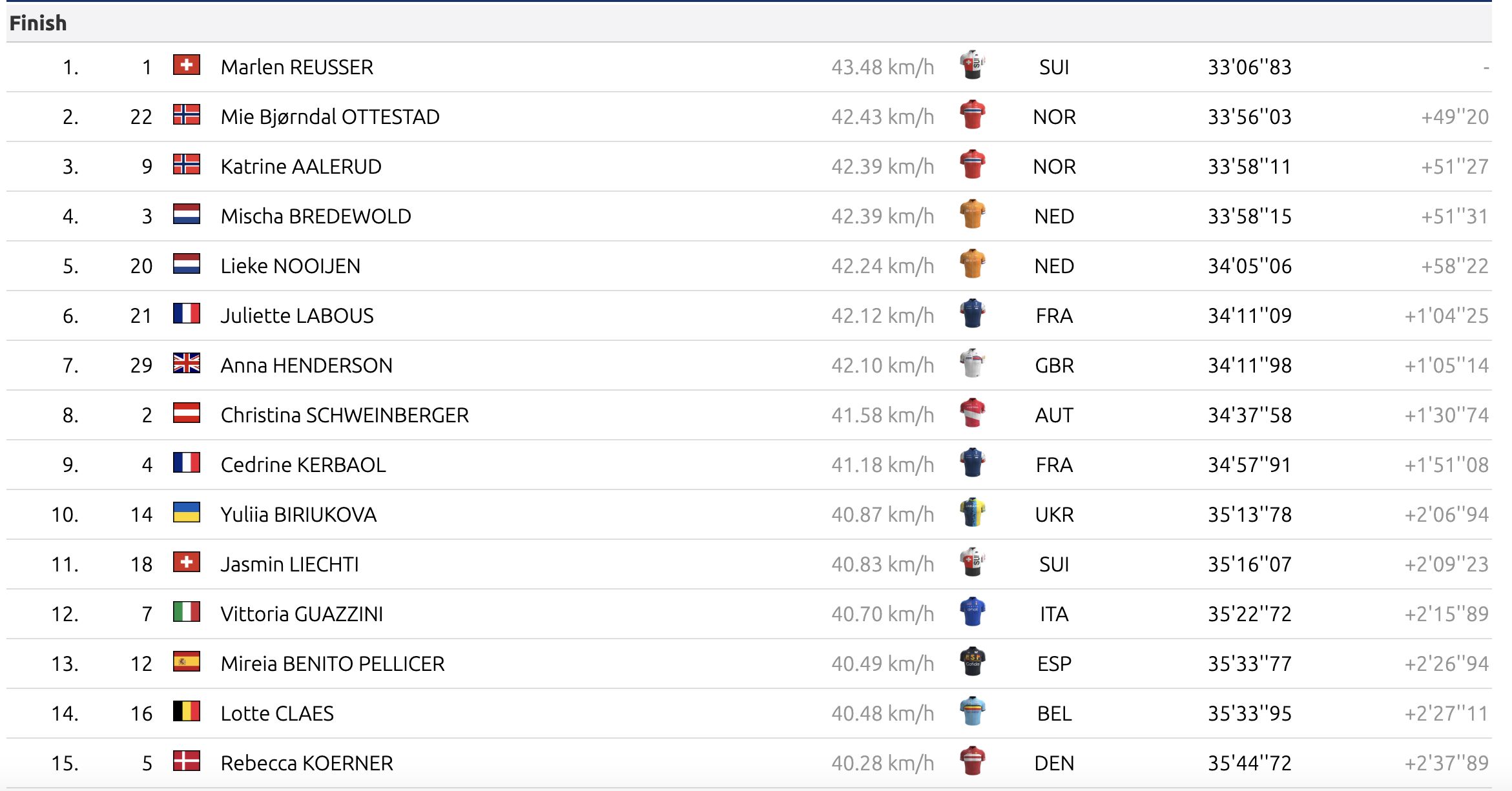 Che beffa per Bredewold! È terza ad appena 4 centesimi da Aalerud. Reusser la scalzerà dal podio