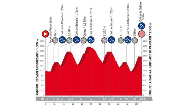 La tappa prende il via da Andorra. Escaldes-Engordany mentre il traguardo è posto sul Coll de la Gallina. Santuario de Canolich.