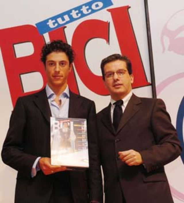 Il direttore di tuttoBICI, in rappresentanza della Liquigas, premia Eros Capecchi (Arianna Rimor) con l'Oscar tuttoBICI Gp Liquigas riservato agli juniores.