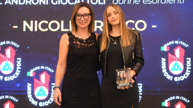 Chiara Androni, titolare di Androni Giocattli, premia Ncole Bracco
